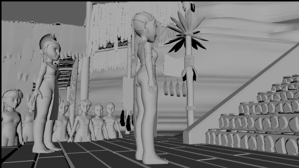 I created keyframe paintings for Ebsynth on top of the 3D environment for the first part of the film and worked on prop texturing for 3d assets for the second part.